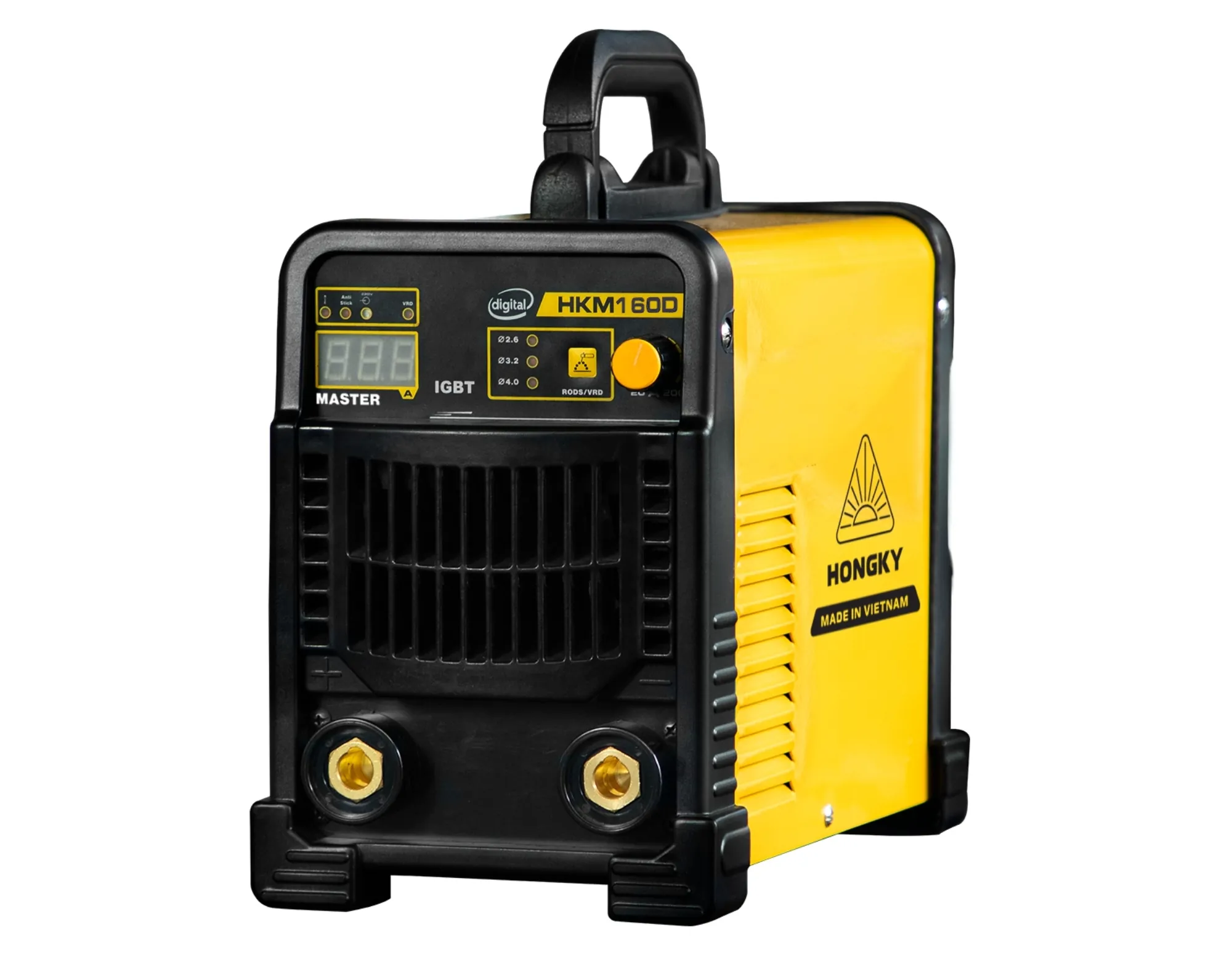 Máy hàn que Hồng Ký Master digital 160A 220V - HKM160D với thiết kế gọn nhẹ, công suất mạnh mẽ 160A, hàn que 2.6-3.2mm, chức năng Mồi lửa nhanh Hot Start, Bù hồ quang Arc Force, Chống dính thông minh Anti Stick, Chống giật an toàn VRD. Bảo hành 18 tháng. Lý tưởng cho thợ hàn, dễ sử dụng, ổn định trên thép và inox.