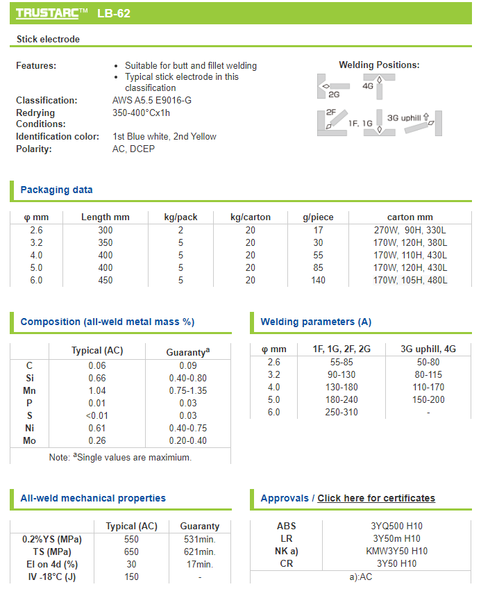 Công ty TNHH IES Việt Nam là đại lý chuyên bán buôn, bán lẻ Que hàn chịu lực LB-62 E9016-G Kobelco. Sản phẩm Que hàn chịu lực LB-62 E9016-G Kobelco có giá thành rẻ cạnh tranh, chất lượng tốt, nguồn cung cấp luôn đầy đủ. Que hàn chịu lực LB-62 E9016-G Kobelco là sản phẩm QUE HÀN được sản xuất chính hãng, bảo hành lâu năm, thuộc nhóm sản phẩm Que hàn KOBELCO.
